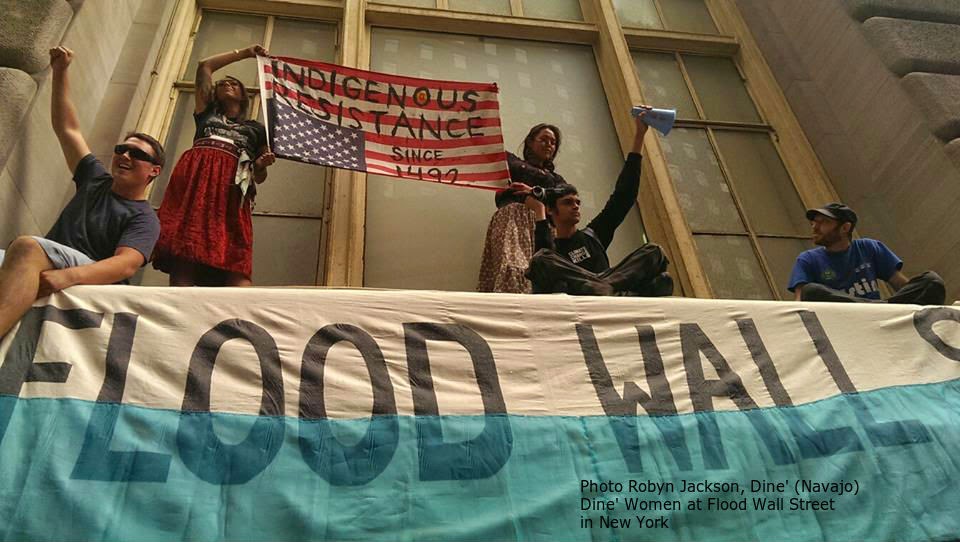 Femmes Navajo protestant à New York pendant le Sommet sur le Climat. Des dizaines de milliers de manifestants ont protesté à New York. De nombreuses autres manifestations ont eu lieu un peu partout dans le monde. Voir d’autres photos de la manifestation sur Indigenous Resistance