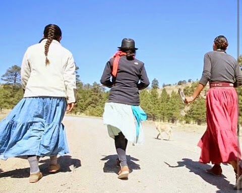 Nous avons achevé cette partie de notre voyage de 1600 km hier. Au total 560 km ont été ajoutés aux 370 de la marche précédente. Ce fut une journée très spéciale d’avoir passé du temps auprès de notre Montagne Sacrée de l’Ouest, Dooko’ooslííd [San Francisco Peaks], rejoints par nos frères et sœurs Ch’izhi/Apache. Nous ne pourrons jamais dire toute notre gratitude pour cet honneur de prier pour notre peuple, notre terre et notre culture. Nous attendons avec joie et impatience le solstice d’été, pour repartir (de Flagstaff à Durango). Axhéé’hé [Merci].