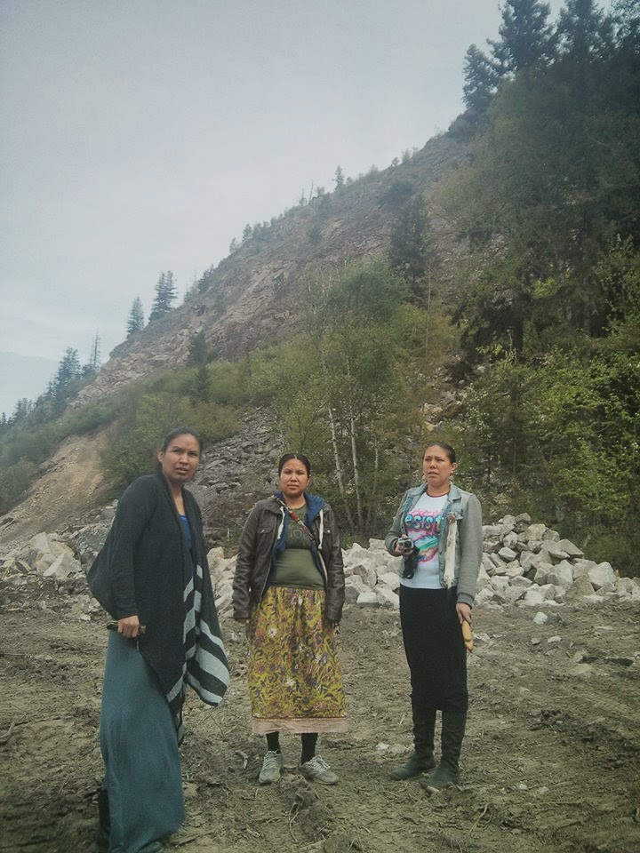 27 avril 2015 – La Société des Femmes Guerrières Secwepemc a bloqué l’extension de l’autoroute de TransCanada à leur site sacré. Cette zone maintient des liens anciens entre les Secwepemc, qui impliquent une responsabilité inhérente de protéger ce lieu habité par un Etre Sacré et NE PEUT PAS être dérangée. Cette zone, connue sous le nom de ‘Hoffman’s Bluffs’ par les Blancs, n’est pas à vendre et ne peut être chamboulée ! Le Territoire Secwepemc n’a jamais été cédé, ni abandonné, il n’y a pas de Traité, pas de vente, donc le Canada ou la Colombie Britannique n’y ont pas juridiction. Ce n’est pas la première fois que l’autoroute de TransCanada a profané nos Sites Sacrés Secwepemc ou nos cimetières, ils ont détruit des villages entiers. Çà doit s’arrêter !