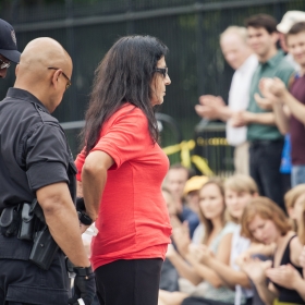 Photo: Debra White Plume arrêtée lors d’une manifestation contre le Keystone XL en 2011