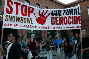 Lutte menée depuis des décennies par plus de 13 tribus d’Arizona (le rituel ‘plus de’ vient du fait qu’une des tribus Apaches concernées se divise en deux groupes) contre la station de ski Arizona Snowbowl qui a détruit de nombreux arbres rares pour s’étendre et fabrique de la neige artificielle à partir d’eau d’égouts recyclée.