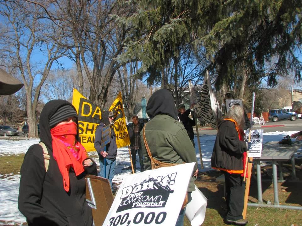 Le 9 février 2013, plus de 50 personnes s’étaient rassemblées dans le centre de Flagstaff pour une danse pacifique d’Idle No More pour protester contre l’expansion de la station de ski et la fabrication de neige avec des eaux d’égouts sur les Pics San Francisco sacrés.