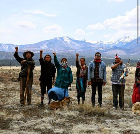 Nous avons achevé cette partie de notre voyage de 1600 km hier. Au total 560 km ont été ajoutés aux 370 de la marche précédente. Ce fut une journée très spéciale d’avoir passé du temps auprès de notre Montagne Sacrée de l’Ouest, Dooko’ooslííd [San Francisco Peaks], rejoints par nos frères et sœurs Ch’izhi/Apache. Nous ne pourrons jamais dire toute notre gratitude pour cet honneur de prier pour notre peuple, notre terre et notre culture. Nous attendons avec joie et impatience le solstice d’été, pour repartir (de Flagstaff à Durango). Axhéé’hé [Merci].