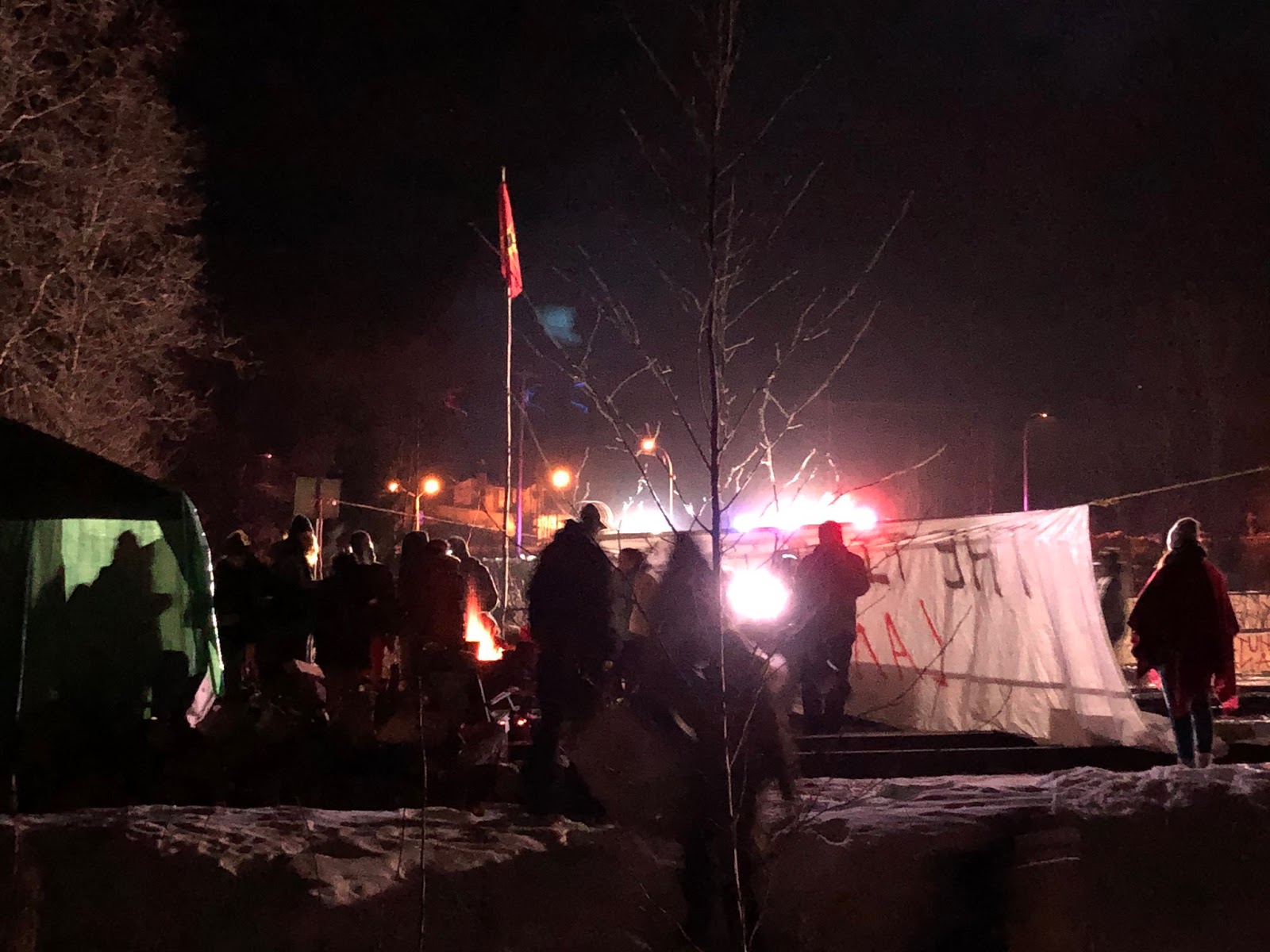Le raid contre la barricade en Territoire Mohawk Tyendinaga a eu lieu tôt lundi matin, après qu’un ultimatum de quitter les lieux à minuit ait été lancé par l’OPP la nuit précédente. Dix personnes ont été arrêtées pour de multiples accusations, le chasse-neige utilisé au cours de l’action ayant été trainé par la police. Malgré l’attaque violente du barrage Tyendinaga, la communauté est toujours aussi résolue à soutenir les Wet’suwet’en, et s’est réunie toute la journée et toute la nuit pour résister à la présence policière.